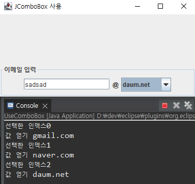 System.out.println("값 얻기 "+dcbm.getElementAt(selectedIndex));