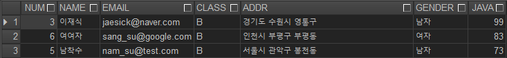 values (3,'이재식','jaesick@naver.com','B',