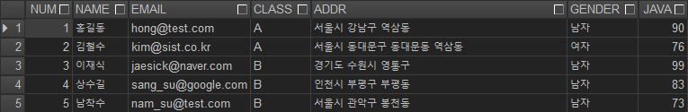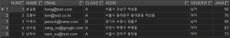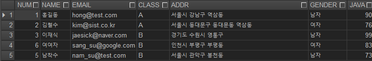 SELECT NUM,NAME,JAVA,CLASS FROM work0305;