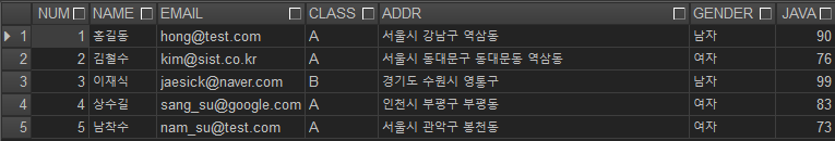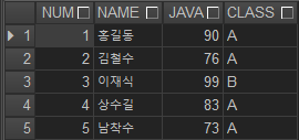 SELECT NUM,NAME,JAVA,CLASS FROM work0305;