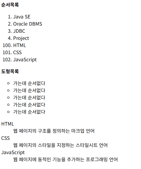<li value="100">HTML</li> <!-- li value="100" 특정 값 부터-->