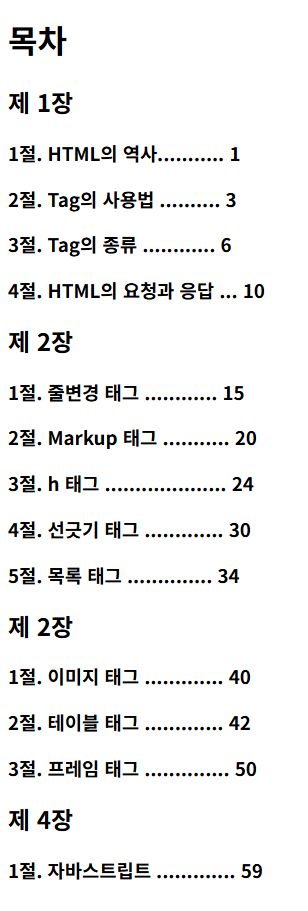 <h3>1절. 줄변경 태그 ............ 15</h3>