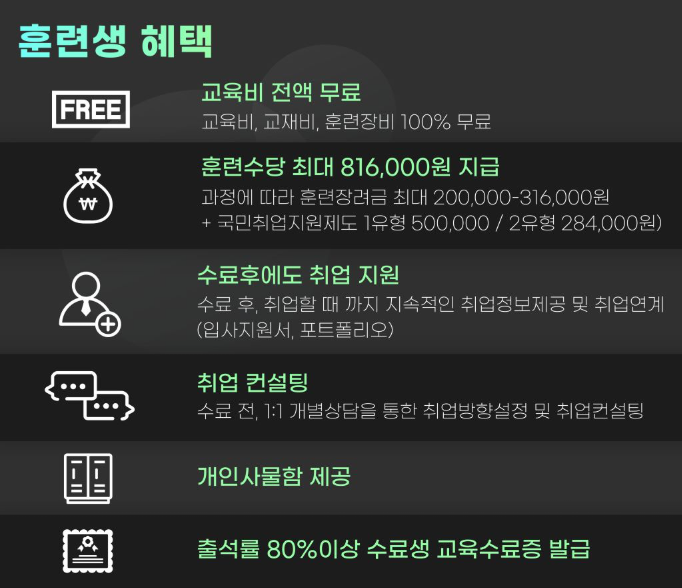 다양한 훈련생 혜택을 지원하니 잘 알아보시면 더욱 좋겠죠?