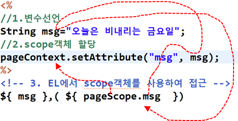 -EL에서는 변수를 직접 출력할 수 없고, scope객체에 할당해야 출력가능.