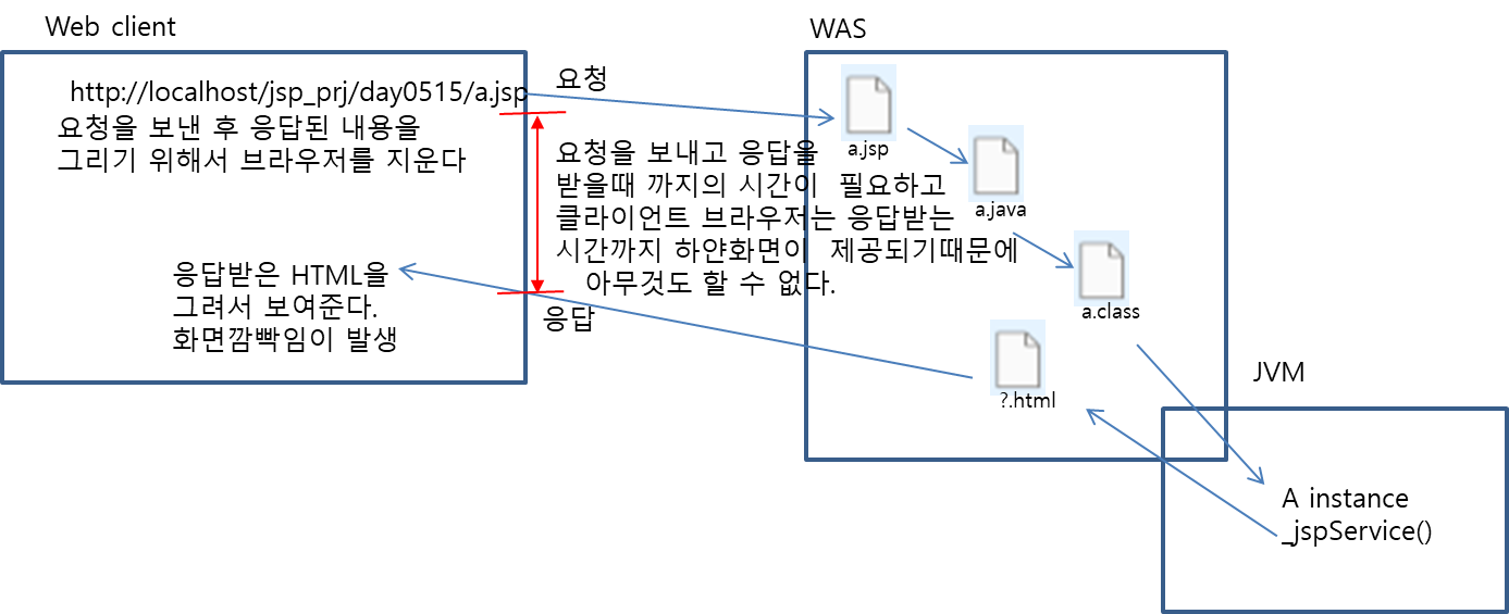 -<a>, <form>로 요청을 보낼 때 동기식으로 동작.