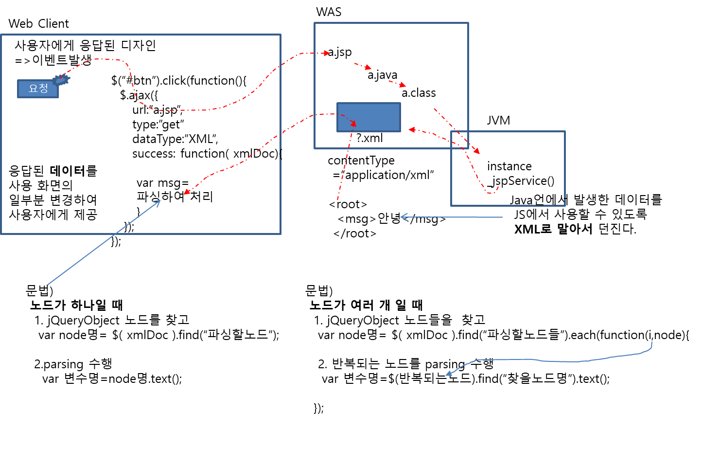 - jQueryObject의 find 함수로 노드를 찾고, parsing 수행한다.