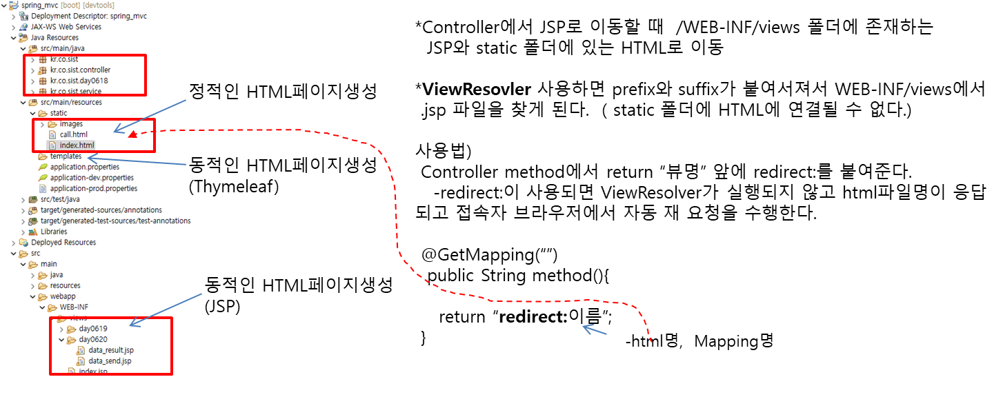 - HttpServletRequest, Model interface, ModelAndView class를 사용하면 업무처리한 결과를