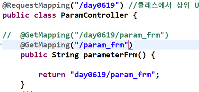 Public String method( @RequestParam(value=“”,defaultValue=“”)데이터형 변수명 ,