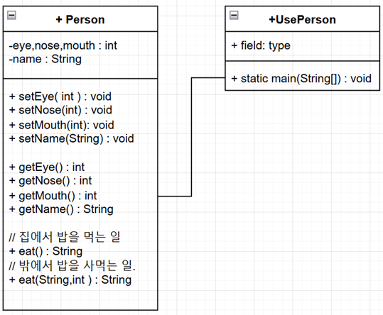 이제는 class 부분에 메소드를 정의하고 main에서는 메소드를 호출하기만 하는 식으로 진행합니다