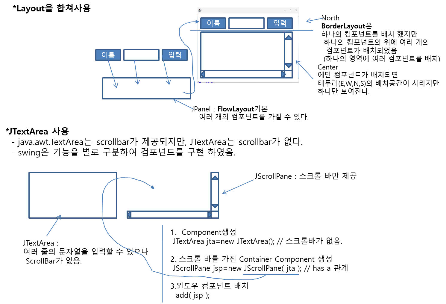 JTextArea jtaCenter=new JTextArea("가운데");