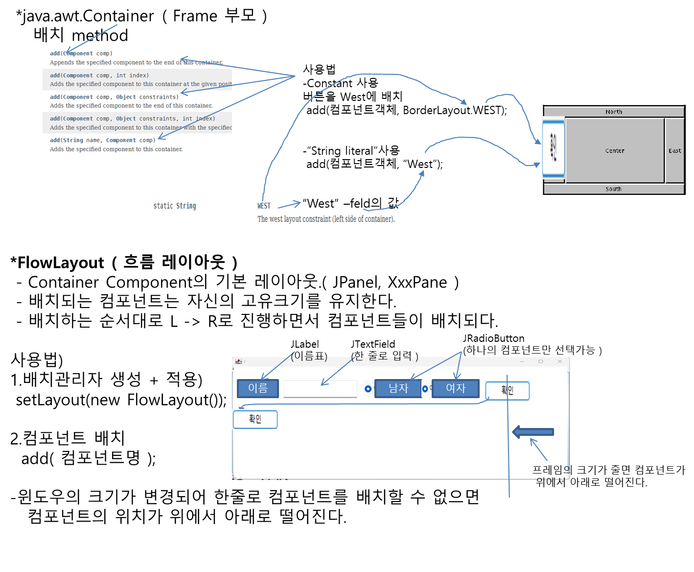 setLayout(new FlowLayout()); //BorderLayout => FlowLayout 변경
