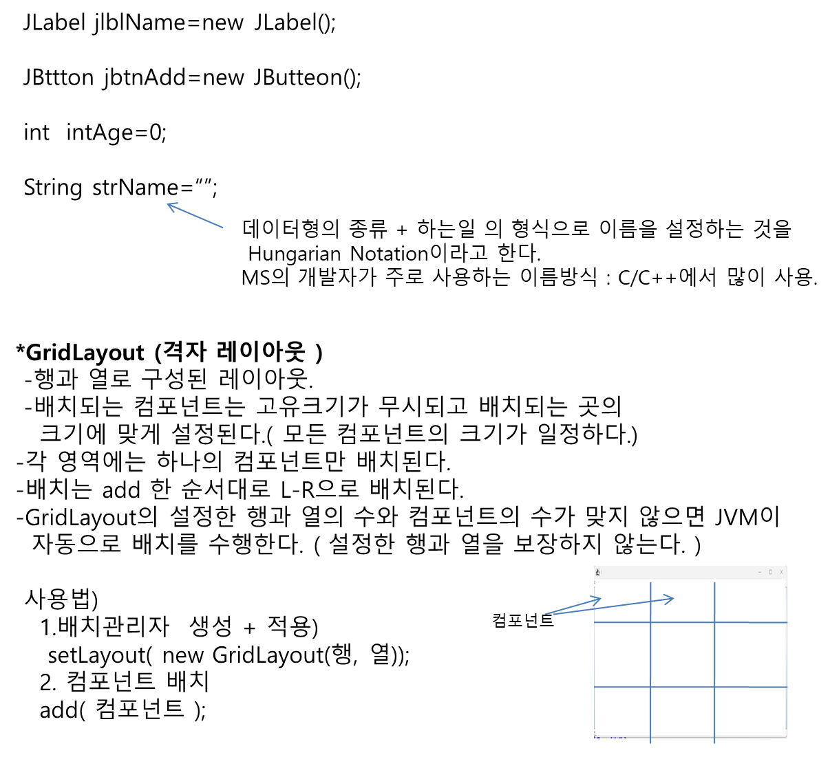 * GridLayout(격자)와 컴포넌트